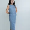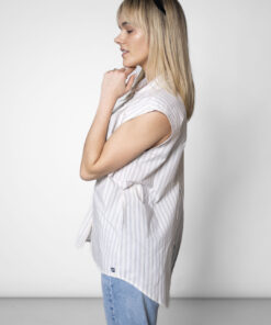 Die ärmellose Bluse besteht aus 100 % Bio-Baumwolle und ist vollständig vegan.