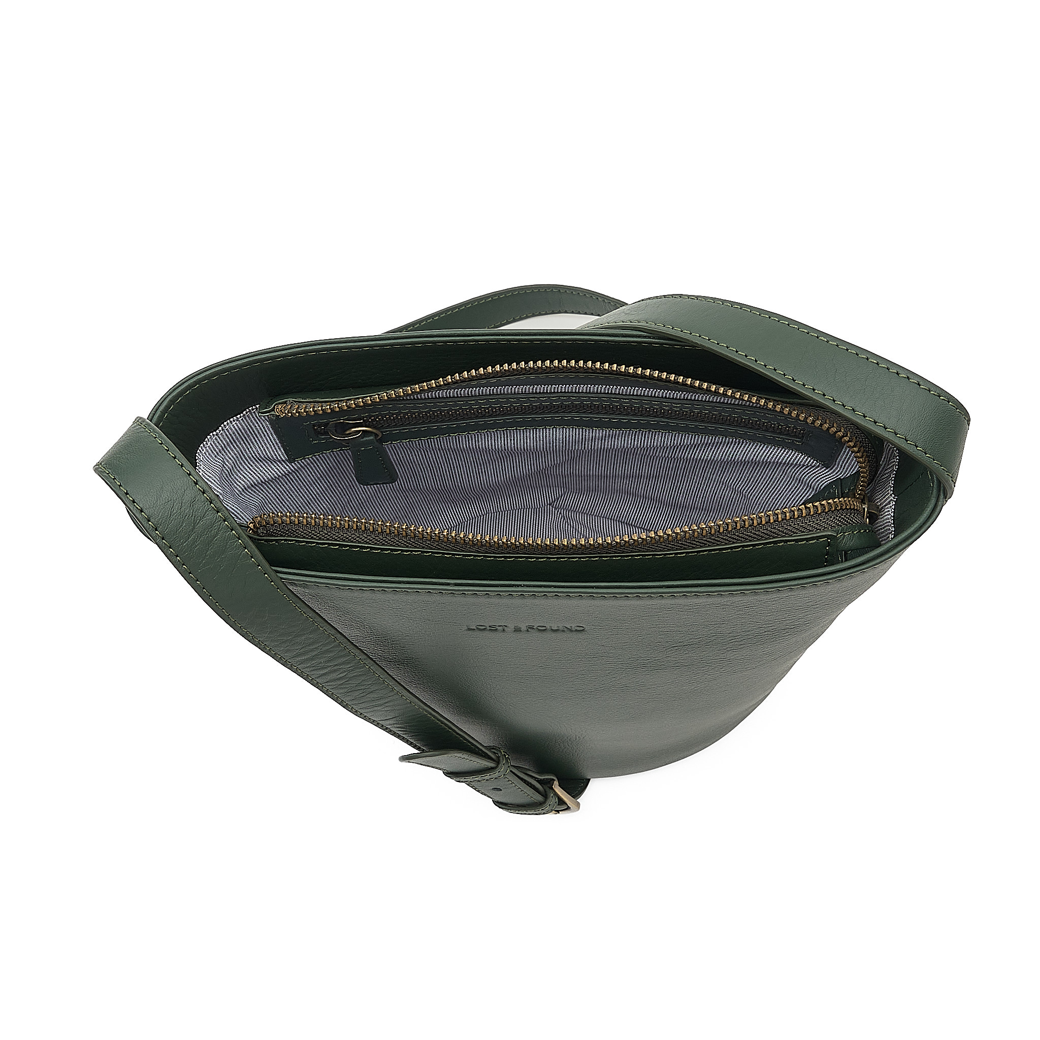 Beuteltasche klein – FOREST kombiniert minimalistisches Design mit praktischer Funktion. Das vollständig gefütterte Innenleben aus gestreiftem Stoff bietet ein separates Reissverschlussfach für kleine Alltagsgegenstände wie Schlüssel oder Karten. Der verstellbare Schulterriemen ermöglicht flexibles Tragen als Crossbody oder über der Schulter.