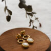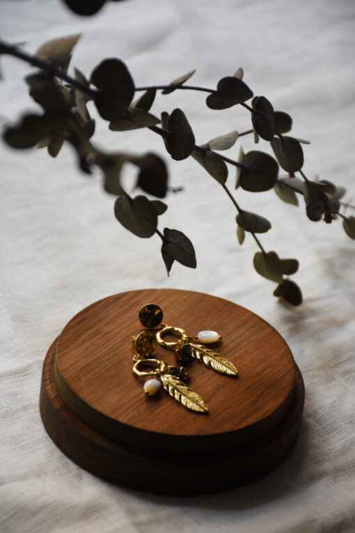 Die Yara Ohrringe kombinieren Tigerauge, Perlmutt und 18k vergoldetes Messing oder 925er Silber.