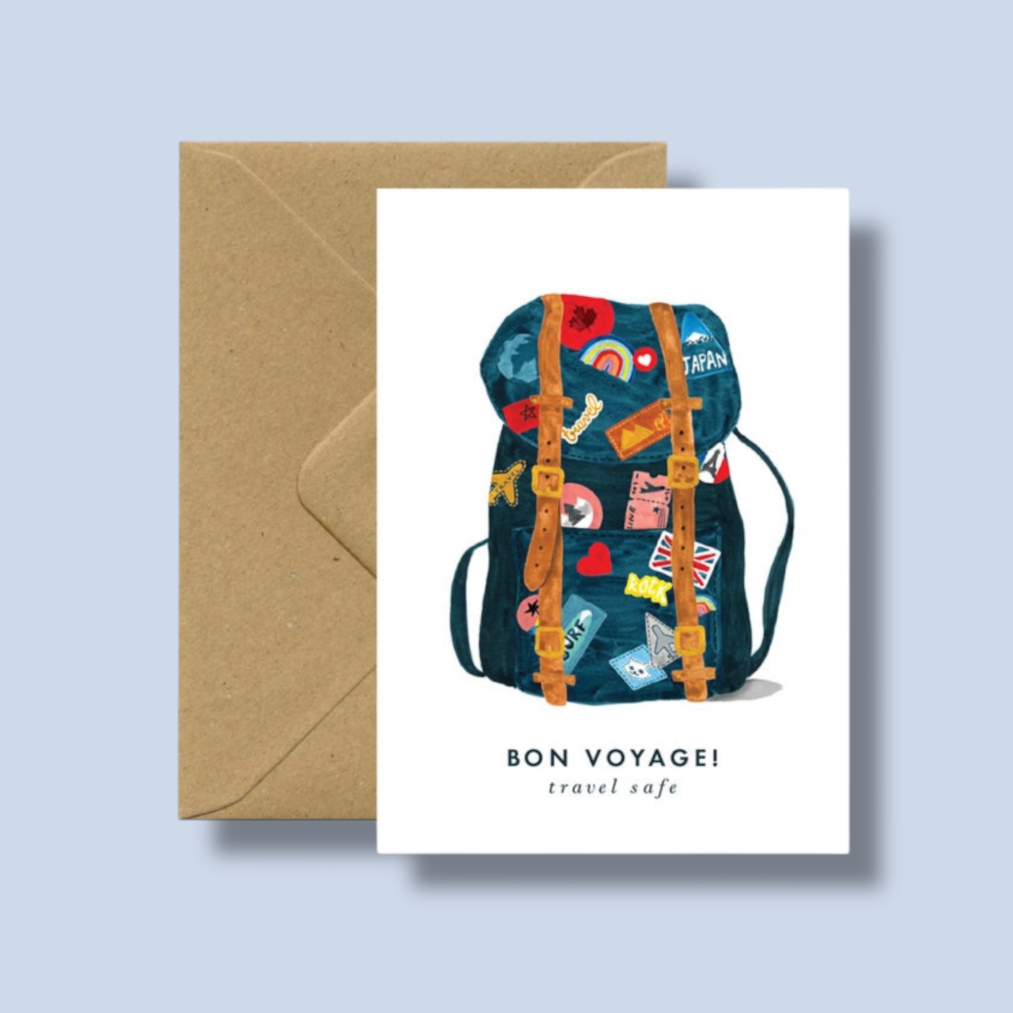 Grusskarte BON VOYAGE bringt Reisefreude und Wertschätzung auf Papier. Diese nachhaltige Reise Grusskarte im A6-Format wird mit einem recycelten Kraftpapier-Umschlag geliefert und eignet sich perfekt für persönliche Nachrichten oder als Gutschein. Ihr schlichtes, stilvolles Design macht sie zu einer schönen Geste für jeden Anlass – ob Abschied, Geburtstag oder Urlaubsbeginn.