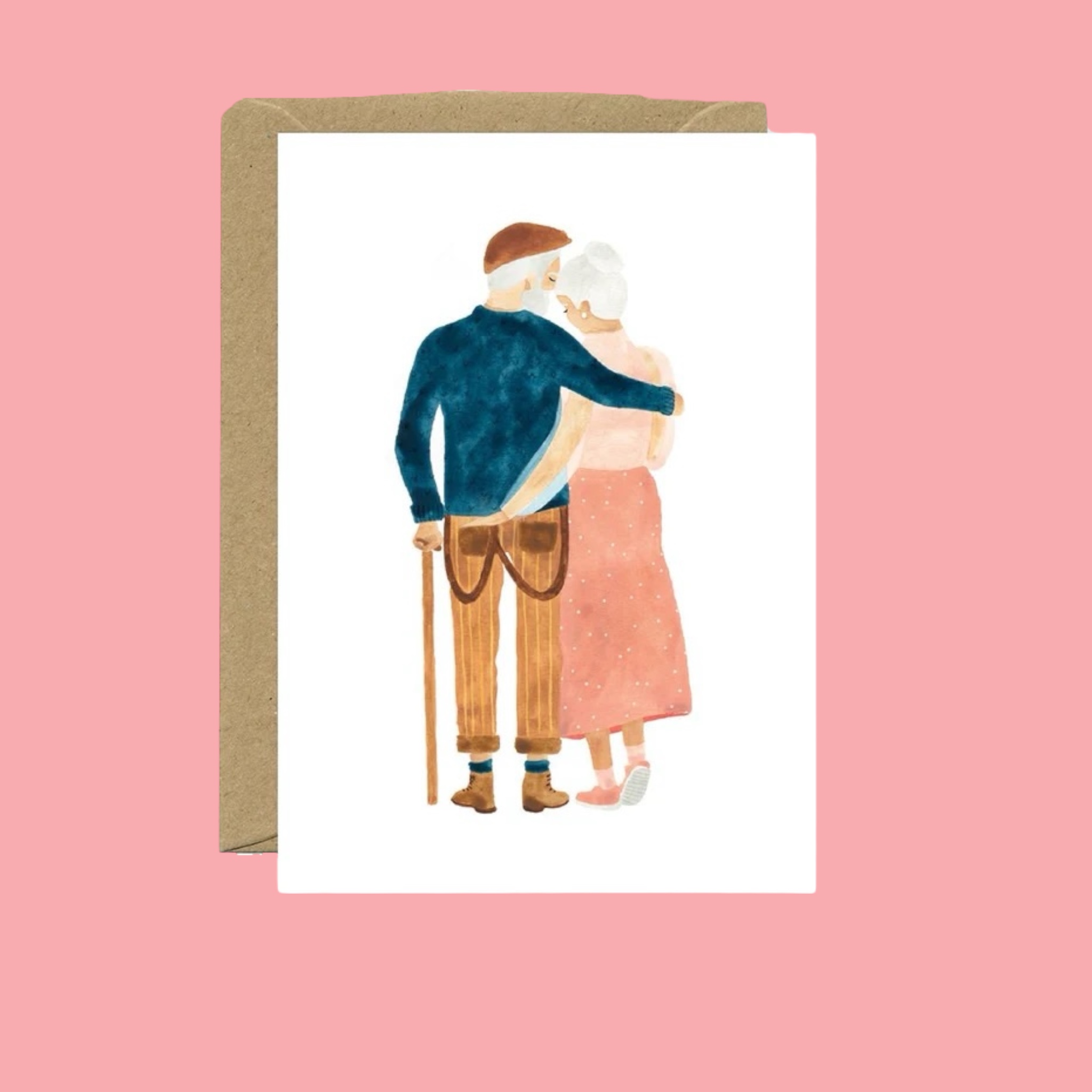 Grusskarte FOREVER LOVE zeigt ein warmes Aquarell-Motiv mit einem älteren Paar Arm in Arm. Die Karte steht für echte Nähe und feste Bindung und eignet sich für Jahrestage, Valentinstage oder kleine Momente, in denen Liebe sichtbar werden soll. Das Motiv passt zu Anlassgeschenken und spricht Personen an, die eine Liebe Grusskarte mit ruhigem Ausdruck suchen. Begriffe wie lustige Grusskarte oder witzige Karten können je nach Situation ebenfalls passen.