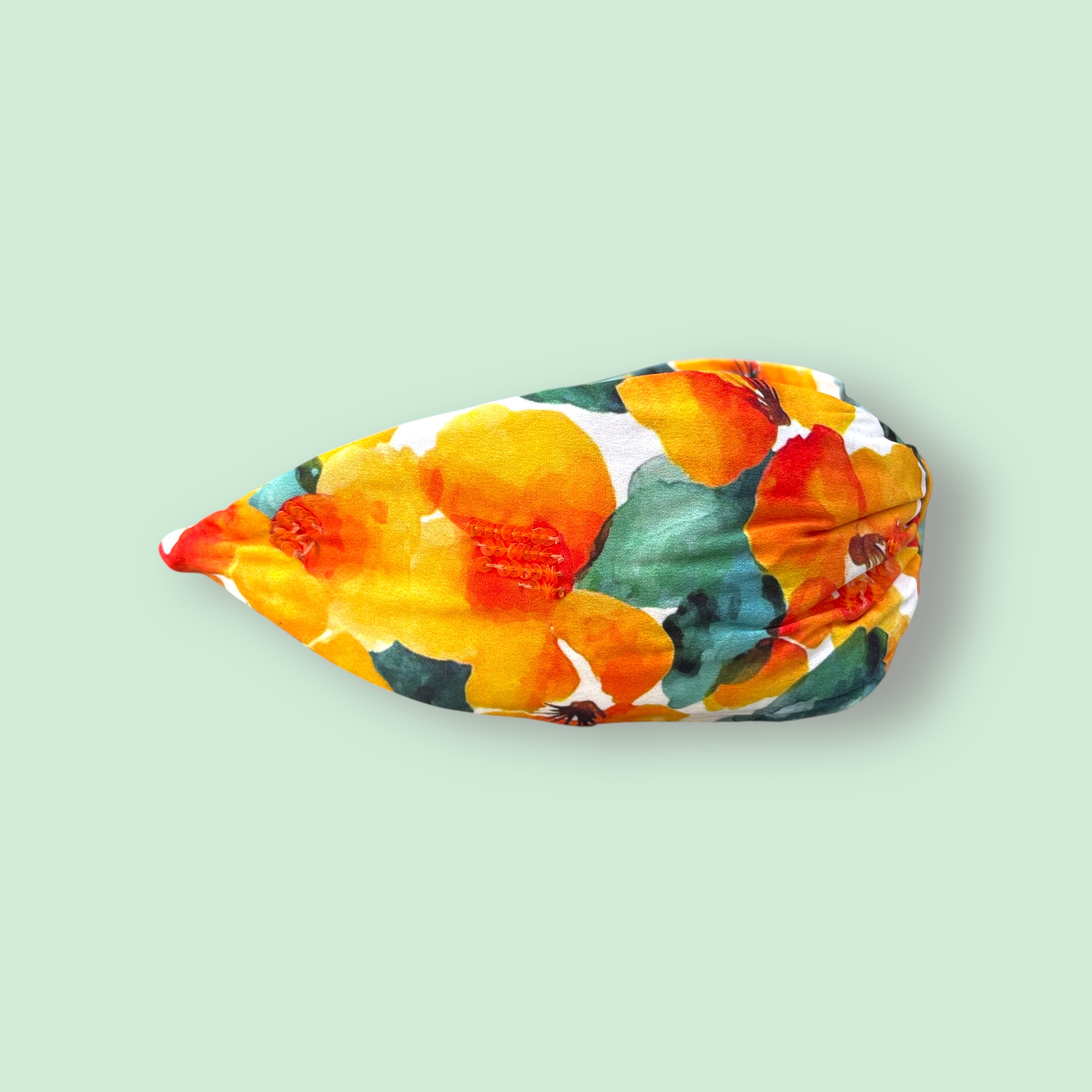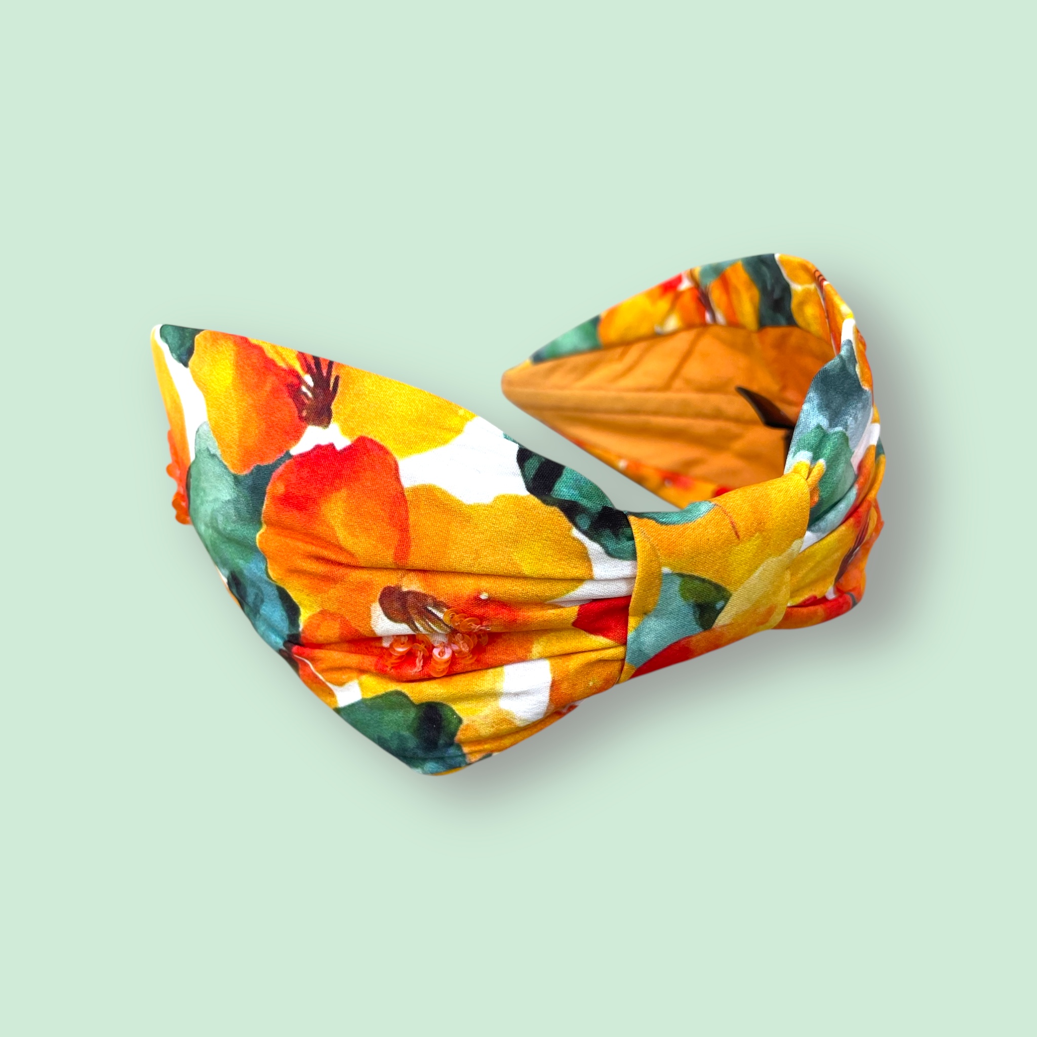 Haarband Orange Blossom vereint Komfort und Stil in einem farbenfrohen Accessoire. Das Haarband mit Blumenprint ist perfekt für Alltag, Strand oder Festival. Sein weiches, elastisches Material sorgt für einen angenehmen Sitz und hält das Haar zuverlässig in Form.