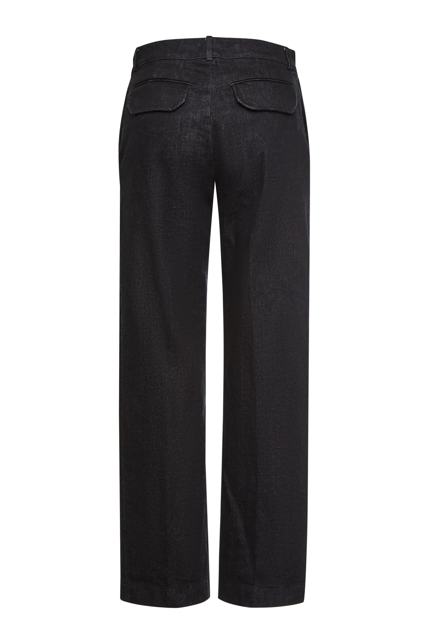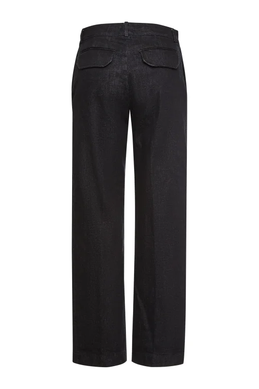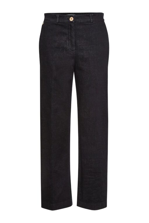 Jeans ANN Pants Denim Black überzeugt durch ihre entspannte Passform und funktionalen Details. Zwei seitliche Eingrifftaschen und Gesässtaschen mit Patte bieten Platz für Alltägliches, während der bequeme Schnitt einen modernen Look schafft. Diese weite Jeans für Damen kombiniert Stil und Komfort auf nachhaltige Weise.