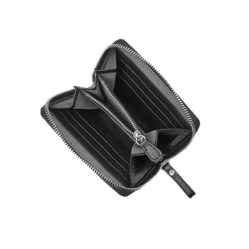 • Fächeraufteilung: 6 Kartenfächer (3 pro Seite), Reissverschlussfach für Münzen in der Mitte, Platz für gefaltete Geldscheine