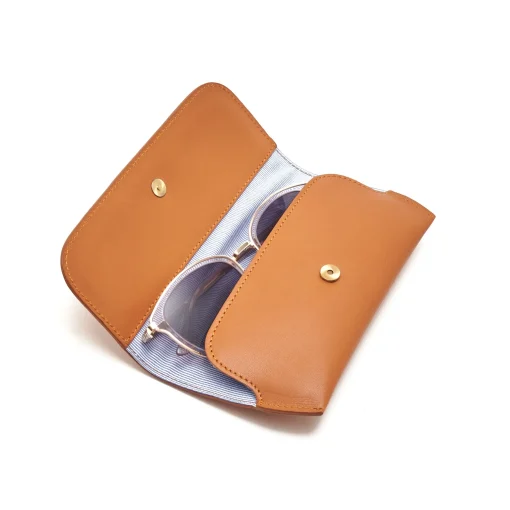 Gefertigt aus hochwertigem Leder überzeugt das faltbare Brillenetui durch Langlebigkeit und Funktion. Seine schlanke Form und der sichere Magnetverschluss machen es zum idealen Begleiter für alle, die Qualität und minimalistisches Design schätzen.