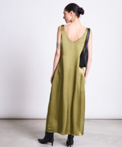 Maxi Dress BENVIE Woody Olive vereint ein lockeres Design mit einem tiefen V-Ausschnitt vorne und hinten. Breite Träger und der fließende Schnitt machen das Kleid zum idealen Begleiter für warme Tage. Mit Sandalen wirkt es leicht und sommerlich, an kühleren Tagen lässt es sich perfekt mit Rollkragenpullover oder Longsleeve kombinieren.