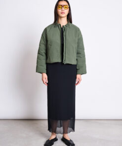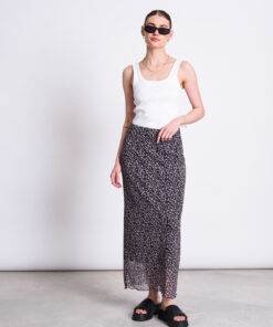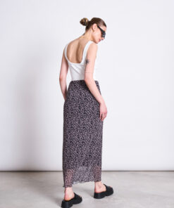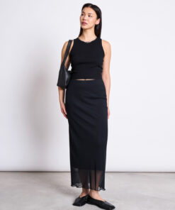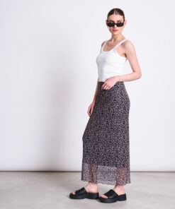 Der blickdichte Unterrock besteht aus 100 % Bio-Baumwolle in feiner Rippqualität für angenehmen Tragekomfort. Der transparente Oberrock aus recyceltem Polyester mit Elasthan sorgt für Bewegungsfreiheit und Struktur. Ein nachhaltiger Maxirock, der Stil und Verantwortung vereint – ideal für bewusste Modefans.