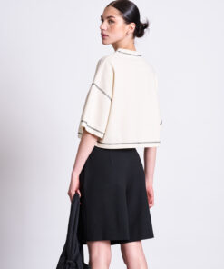 Der Oberrock besteht aus 94 % recyceltem Polyester und 6 % Elasthan, der Unterrock aus 100 % Bio-Baumwolle.