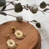 Ohrring AMARA vereint natürliche Eleganz mit symbolischer Bedeutung. Eine fein geschliffene Perle aus Rosa Opal reflektiert sanft das Licht und steht für Ruhe, Herzöffnung und feminine Energie. Zwei zarte, vergoldete Blättchen rahmen den Stein und verleihen dem Design Leichtigkeit und einen Hauch von Naturverbundenheit.