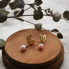Er besteht aus 18 Karat vergoldetem Messing mit einer Perle aus Rosa Opal.