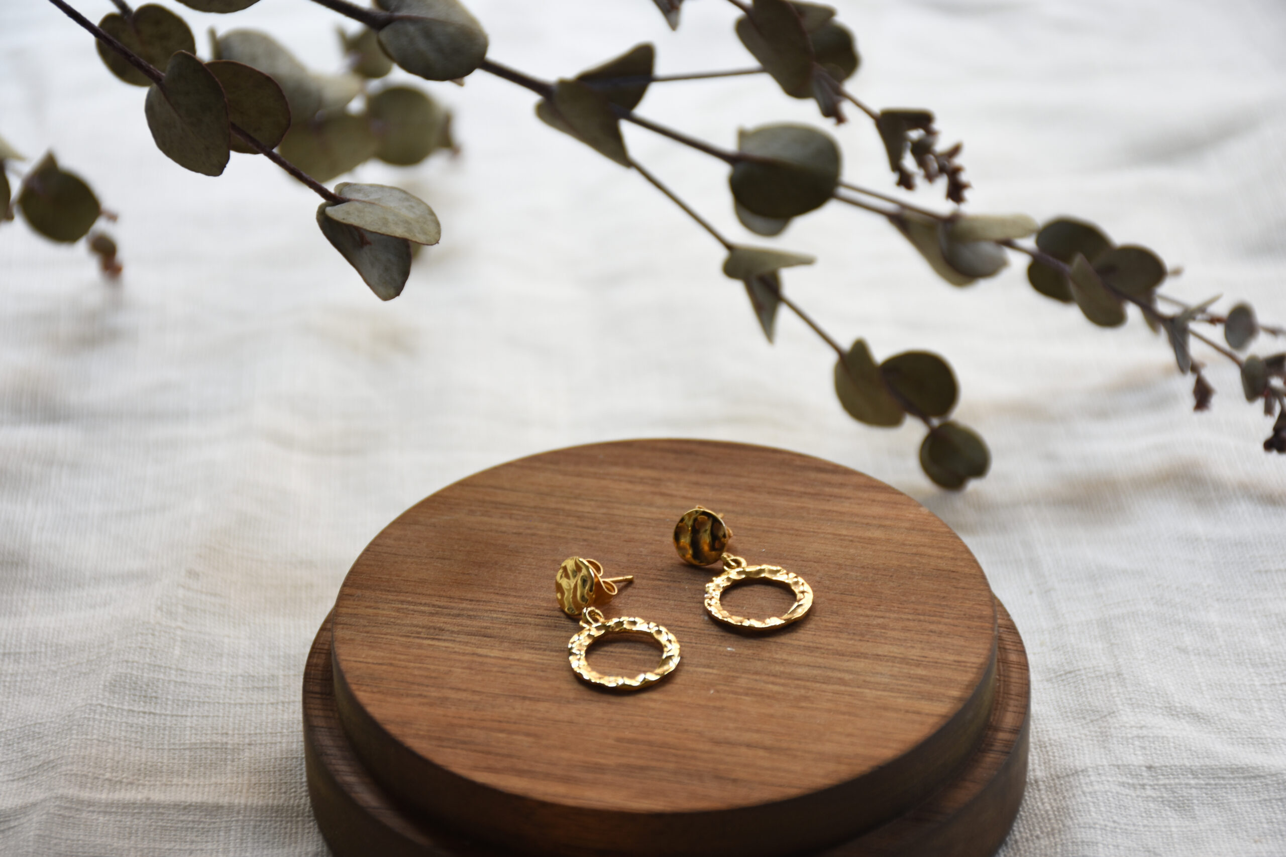 Die Solar Circle Ohrringe werden in Indien handgefertigt – exklusiv für das Luzerner Label Pink Sand.