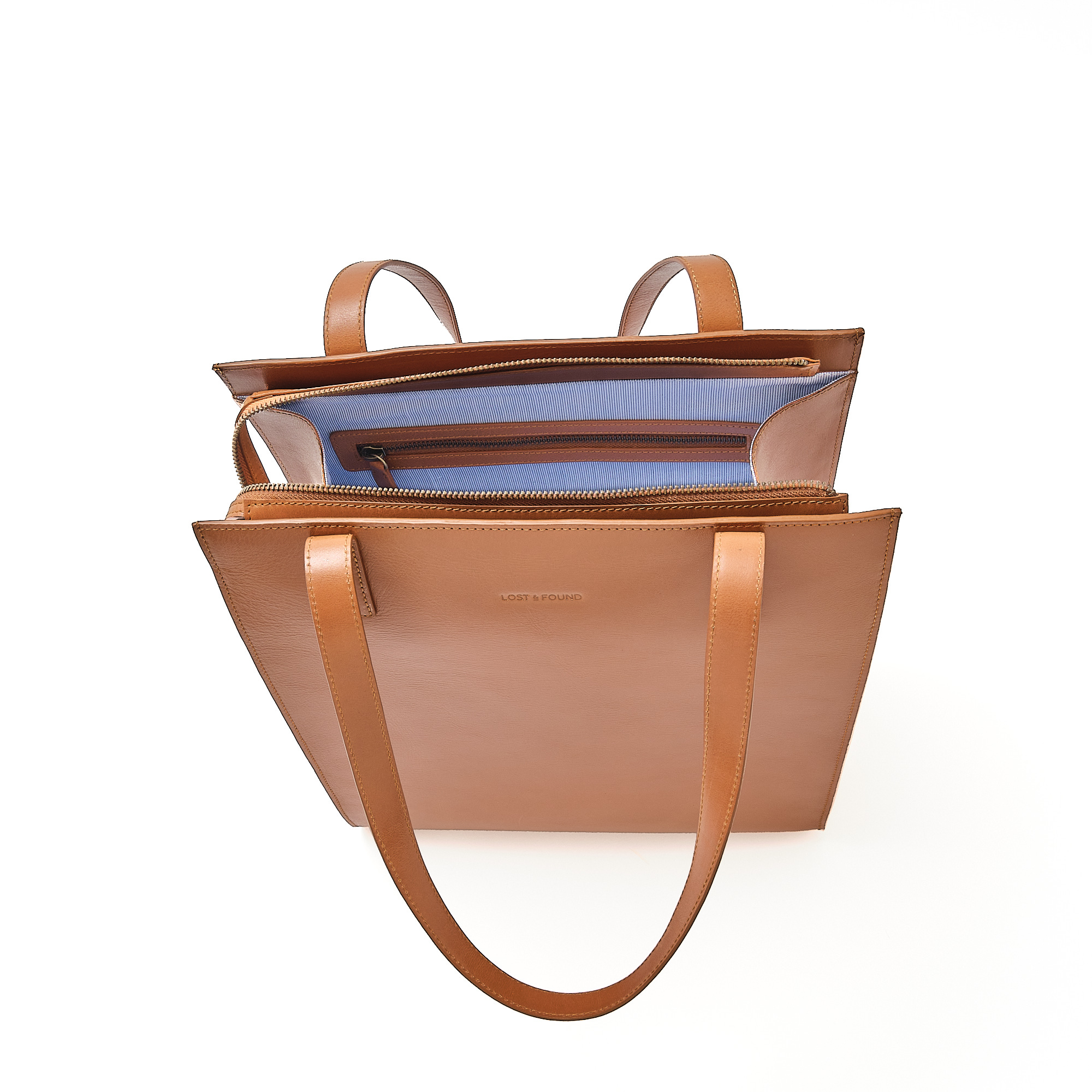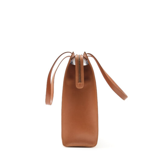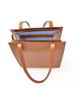 Shopper Curve – CARAMEL verbindet Funktion und Stil in einer hochwertigen Leder Shopper Tasche. Das vollständig gefütterte Innenleben mit gestreiftem Stoff bietet ein separates Reissverschlussfach für Schlüssel, Handy oder Lippenpflege. Durch die robuste Verarbeitung und die praktischen Schonern am Taschenboden bleibt sie formstabil und langlebig – perfekt für den täglichen Gebrauch.