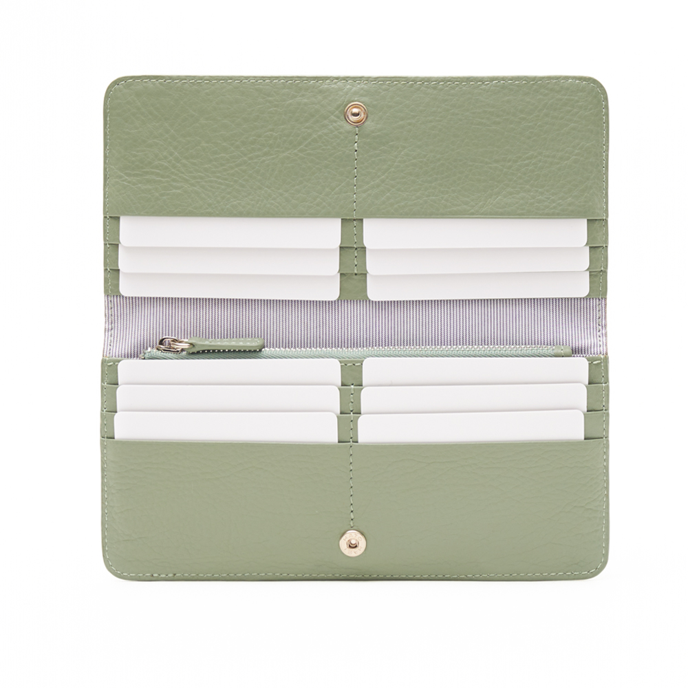 Das Portemonnaie bietet Platz für bis zu zehn Karten sowie zusätzliches Fach für Scheine und Münzgeld.