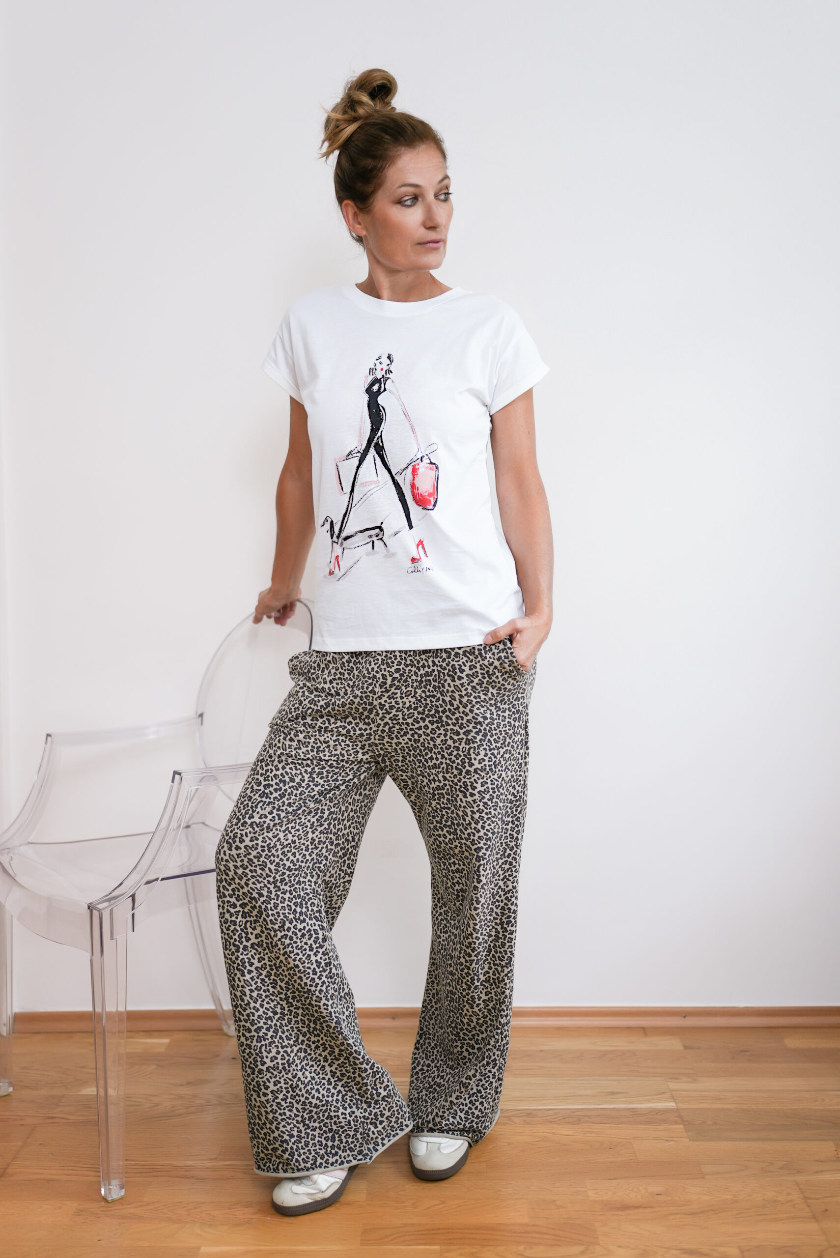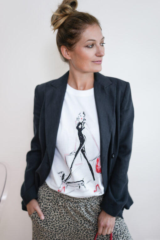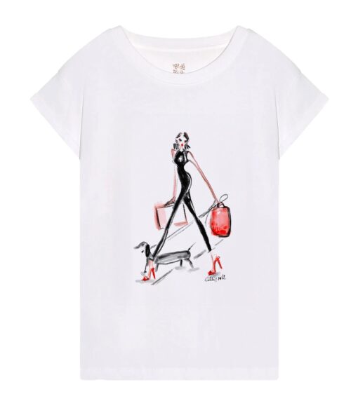 T-Shirt DOG LADY vereint Kunst und Mode in einem modernen Design. Der markante Kunstprint aus der Art Edition von Lilli Grill macht dieses Shirt zu einem besonderen Highlight. Gefertigt aus hochwertiger Bio-Baumwolle (GOTS-zertifiziert) bietet es ein angenehmes Tragegefühl und begleitet dich stilvoll durch Alltag, Büro und Freizeit.